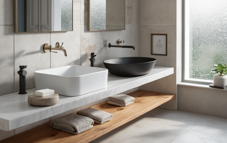 Miss Breite, Tiefe und Beckentiefe, prüf Einbauart (Aufsatz, Unterbau, Wand) sowie Bohrloch-Anzahl und Siphon-Kompatibilität, damit das Becken und dein Waschtisch ergonomisch und platzsparend passen.